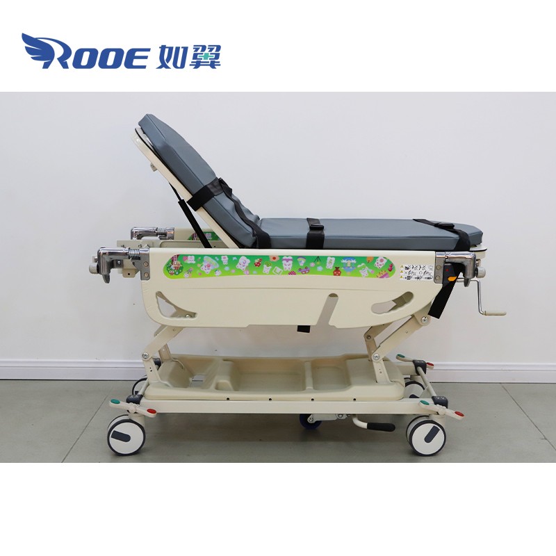 This compact manual transfer cart is designed specifically for pediatric use. It features a hand-cranked mechanical lift, secure side rails, and a central fifth-wheel system for enhanced maneuverability and safety. Ideal for daily transport needs in children’s wards, rehabilitation centers, and smaller medical facilities, it offers a reliable, space-saving, and cost-effective solution.