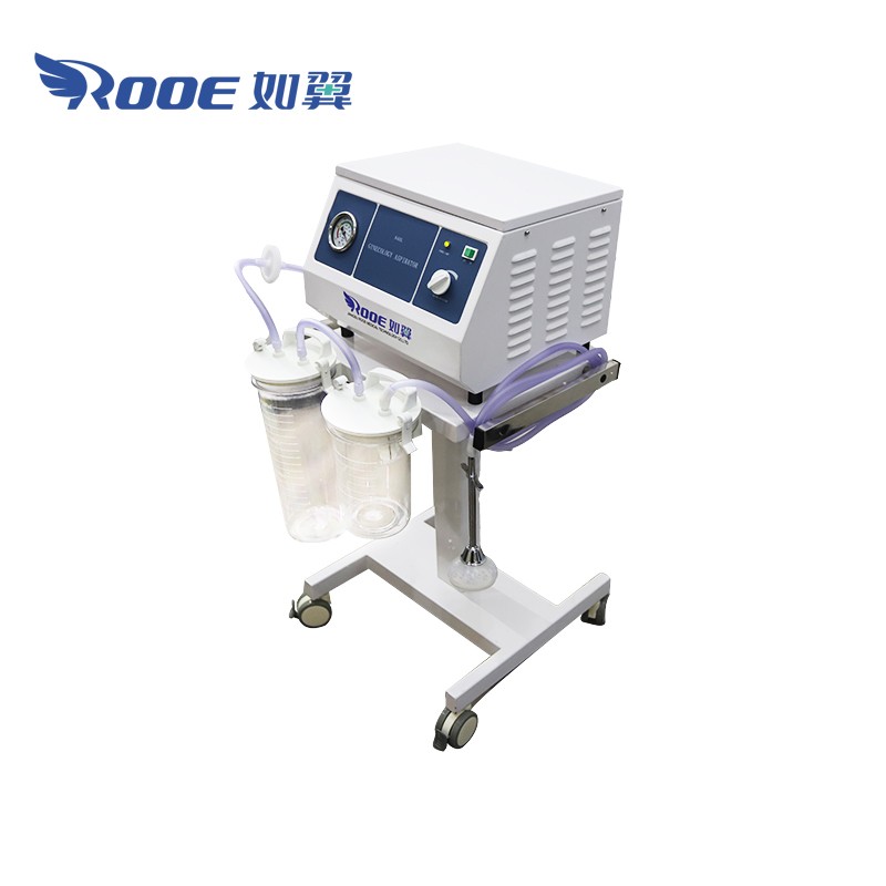 The electric suction device is designed for gynecological surgery in hospitals and clinics. It is a new type of mobile medical suction device, which is suitable for early pregnancy induced abortion, puerperium induced labor and postpartum residue removal. Portable Suction is designed to produce a higher vacuum at a lower flow rate and is equipped with a large diameter collection tank, with the bottle hanging next to the moving bracket for easy observation and operation. According to the needs of the Suction Clinic, a liquid filter device is selected for sampling. Suction aspirator with low center of gravity makes it move smoothly and smoothly; Casters with locking brakes safety improvements. Smooth one-piece design for easy cleaning. These materials can withstand strong disinfectants. Aspirator suction machine also provides a good platform for instrumentation.