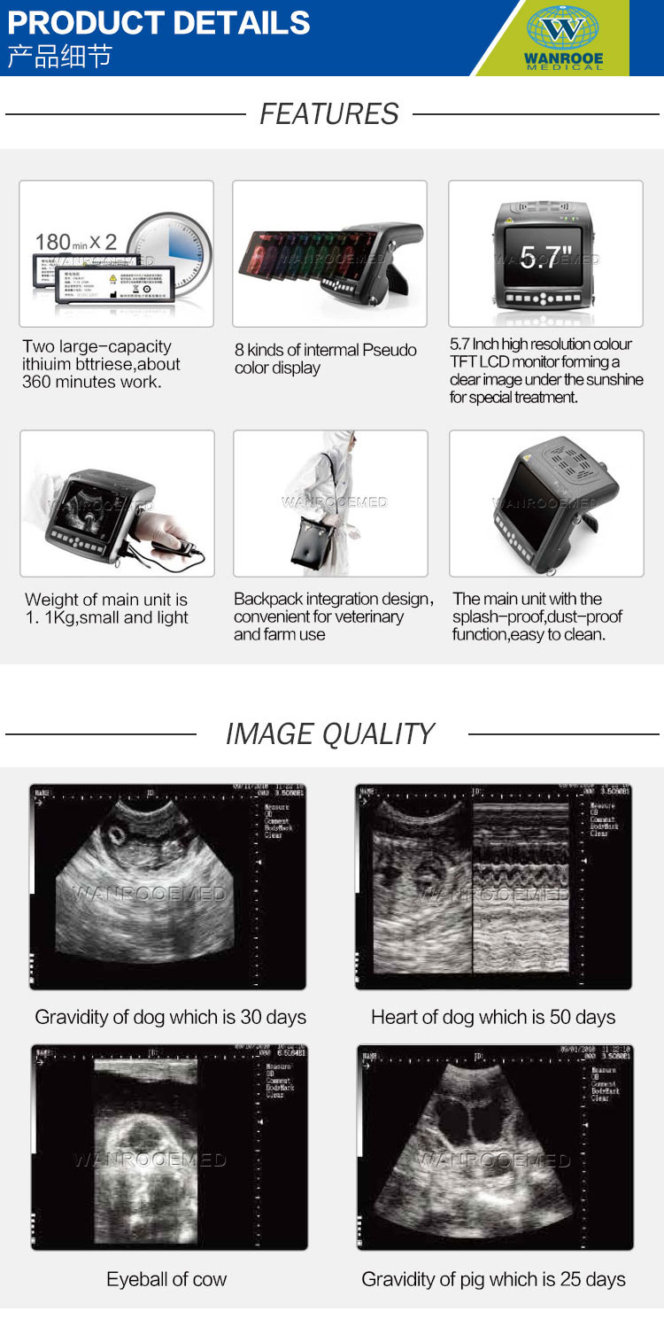 USRKU5200 diseñado ampliamente para el diagnóstico del embarazo, la fertilidad y la enfermedad en los bovinos, equinos, ovinos, caninos, felinos, cabra, cerdo, llama y otros animales.