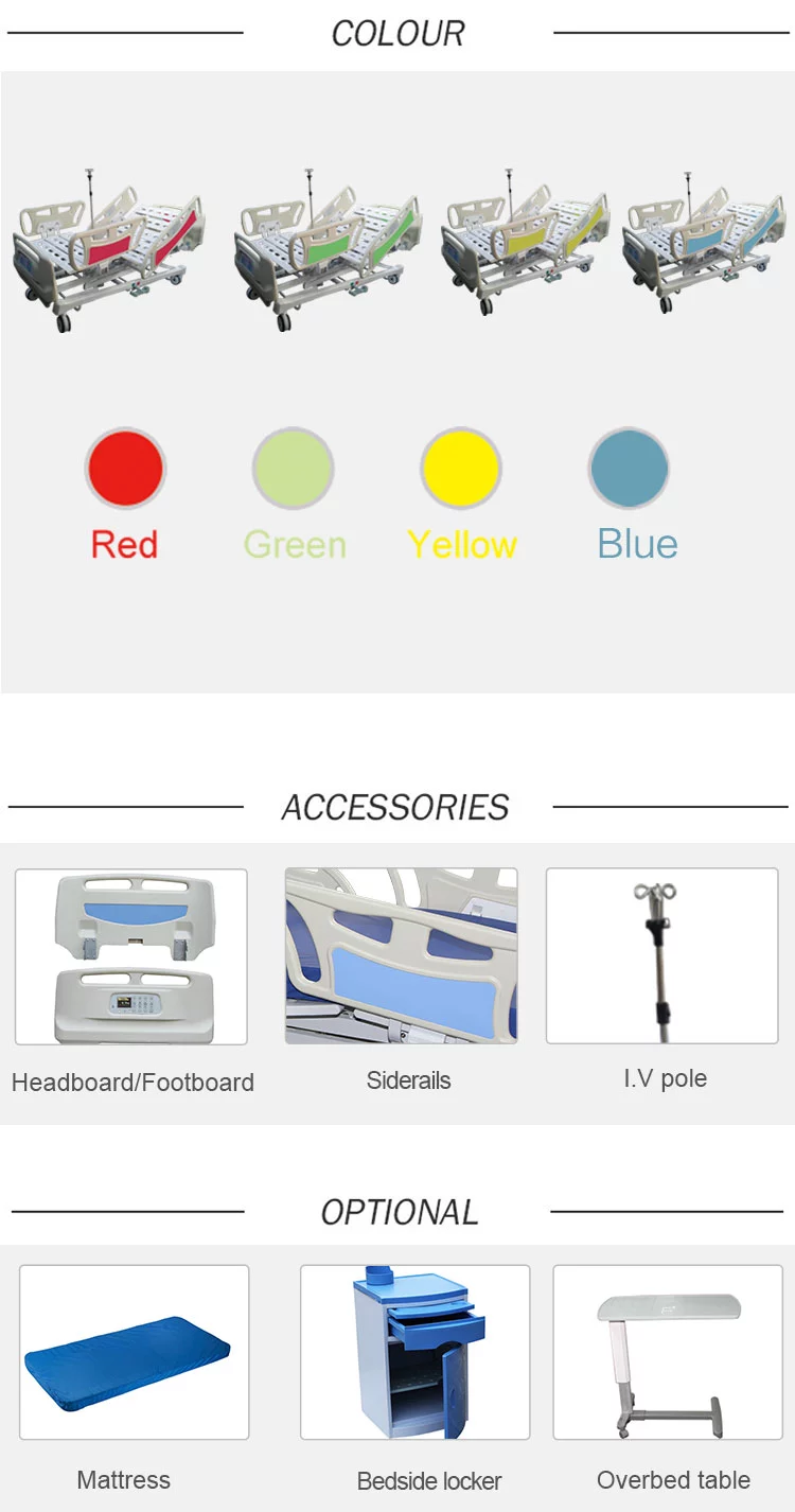 Description générale: Ce type de lit électrique se compose de la plaque d'acier laminée à froid et de quatre morceaux de longs siderails de pp. Il est principalement utilisé dans la salle d'ICU. Le plus grand avantage est le contrôleur intégré sur la planche de pied et les deux côtés des côtés de lit, ce qui permet aux soignants de passer leur temps à aider les patients à se rétablir rapidement dans un environnement sûr et réconfortant.