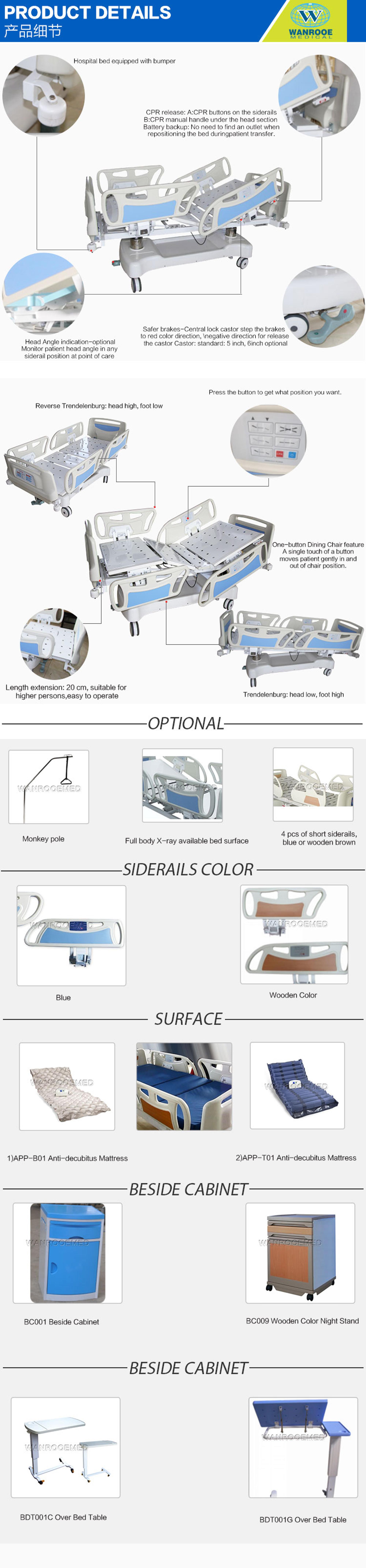 Sécurité des patients - La sécurité et le confort de vos patients sont votre principale préoccupation. Le lit WANROOEMED BAE501E intègre plusieurs fonctions uniques pour vous aider à protéger et à soigner vos patients,comprenant: