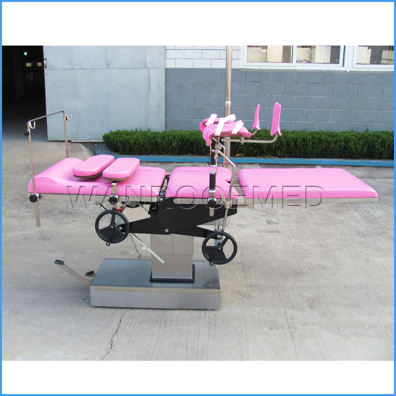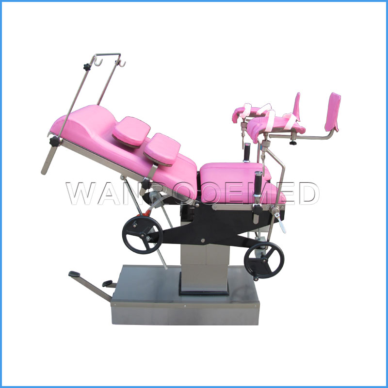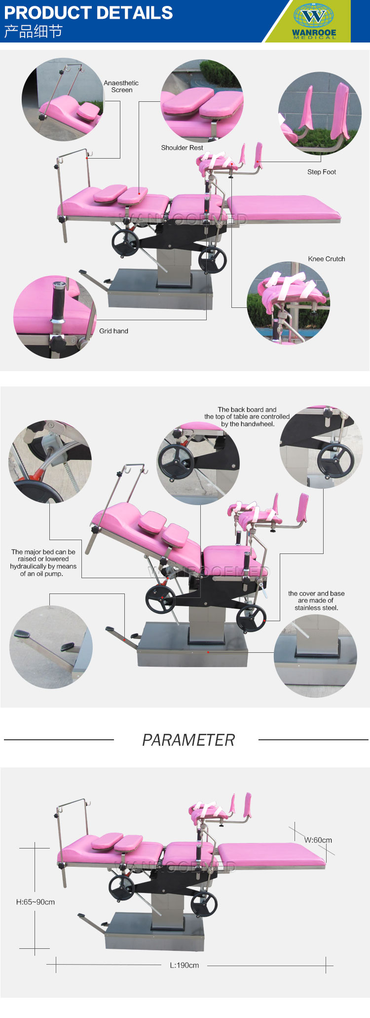 le le lit est conçu pour l'opération de parturition et de gynécologie. Le lit se compose d'un majeur et un auxiliaire. Le panneau arrière et le haut de La table est contrôlée par le volant. Le lit majeur peut être élevé ou abaissé hydrauliquement au moyen d'une pompe à huile.