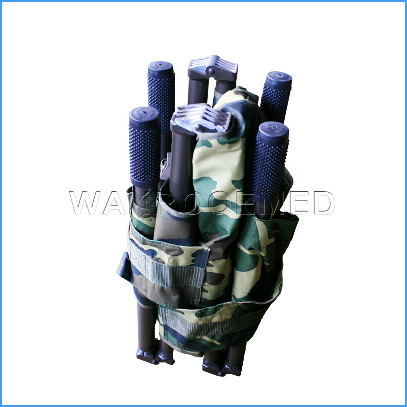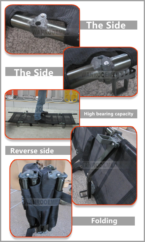 A litière super-forte, de style militaire conçue pour tactique, et désastre utilisation. Poteaux, charnières, pattes et écarteurs en aluminium robustes mais légers barres. Les poignées ont une surface antidérapante et font partie intégrante de les poteaux de litière pour une plus grande force. Les bouchons en caoutchouc gardent tout le sang, des fluides corporels, de l'eau ou des produits chimiques dangereux d'entrer dans la litière pôles. Des charnières en aluminium extra-robustes sont fixées aux poteaux de litière en utilisant trois systèmes de fixation séparés pour une plus grande force et durabilité. La couverture est durable, ignifuge, antidérapante, chimique et maille en polypropylène résistant à la moisissure. La couverture de maille permet le sang, corporel les fluides, l'eau et les produits chimiques dangereux s'écoulent librement loin des patients pendant le processus de décontamination.
