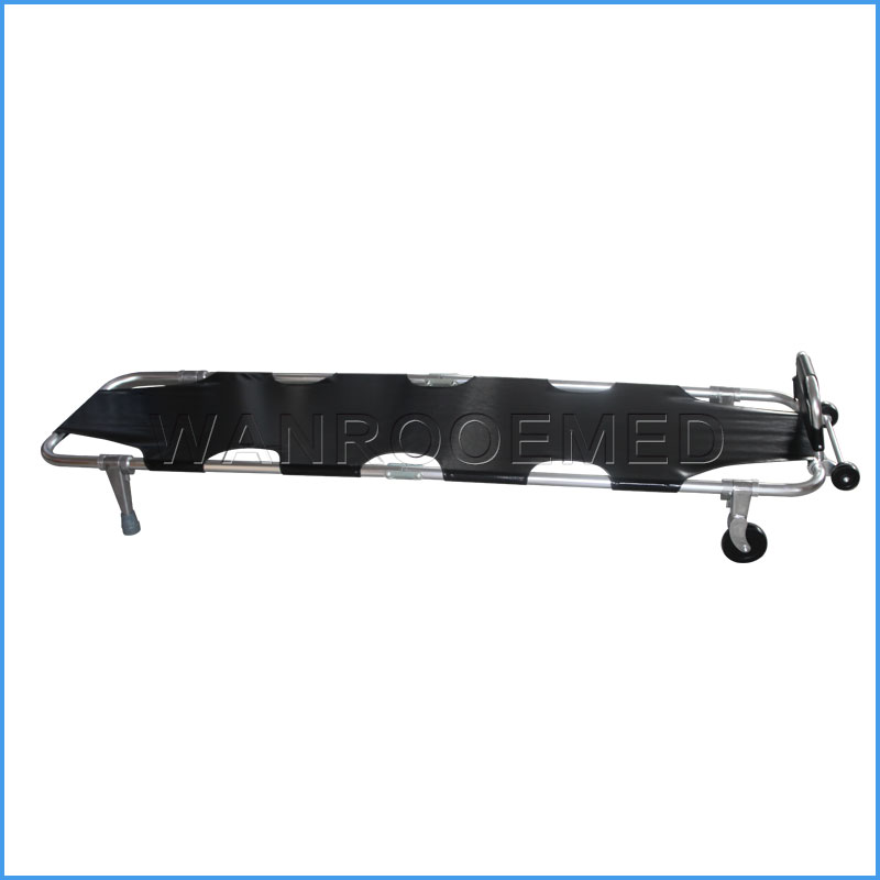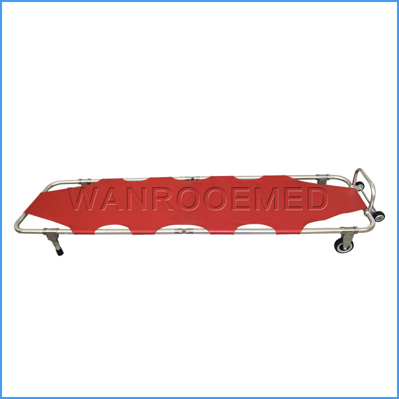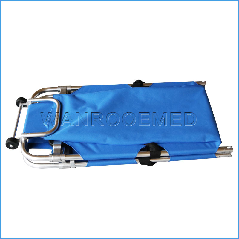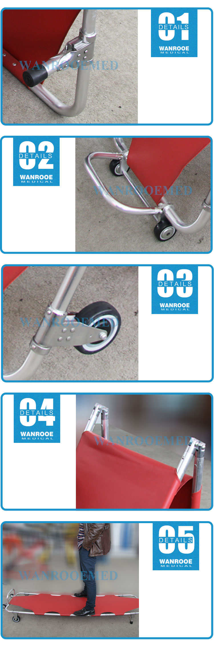 · Caractérisé par deux pieds et deux roues repliés, une civière entière repliée sur deux demi-cadres