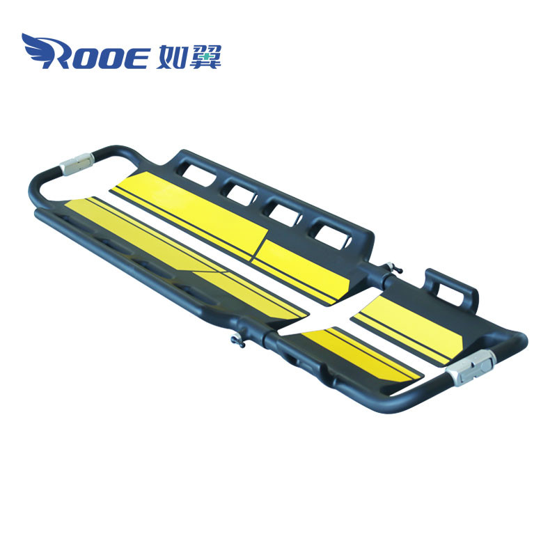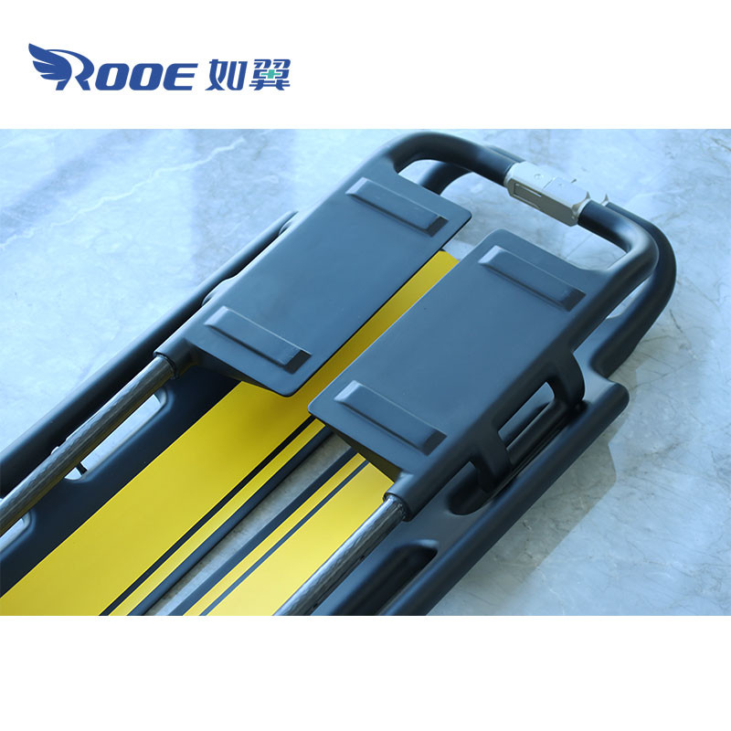 2. The middle of both ends is equipped with clutch hinges, which can divide the stretcher into two parts. The stretcher slides under the victim, reducing the damage to the patient.