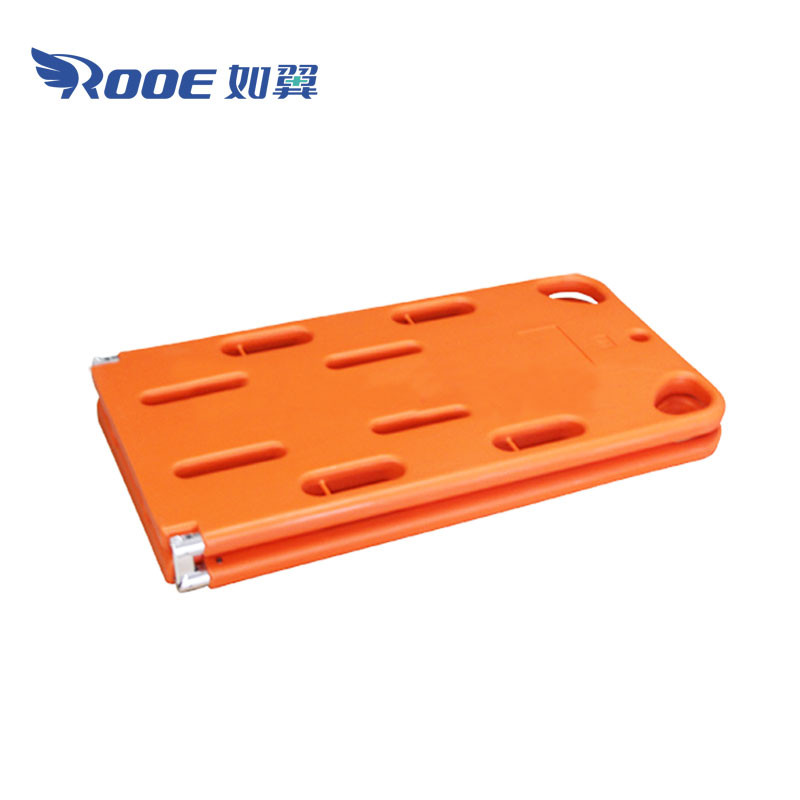 This first aid spine board is compatible with all standard head holders that does not reflect extreme temperatures to ensure better patient comfort than metal folding stretch. immobilization board uses aluminum alloy mechanical pivot, durable, with load capacity of up to 200 kg, and twelve large handle can hold hands with gloves. All purposes are to ensure that patients feel more comfortable during the transfer process.