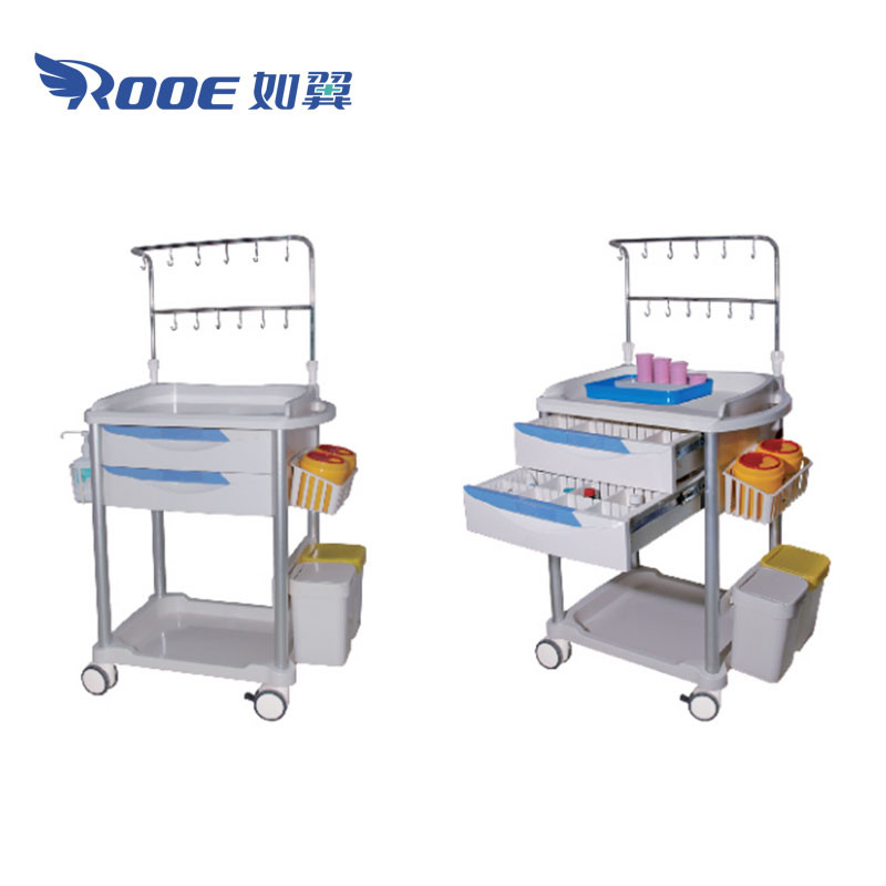 - Optional: Drawer, dust bins, Integrated storage basin formed by Injection Molding, Sharp Disposal Holder, Hand Sanitizer Holder, IV Pole