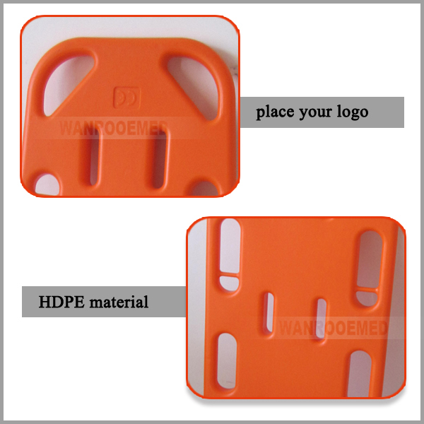 Está hecho de material HDPE sin contaminante de descarga, y de firmeza al desgaste, completamente impermeable, y es fácil de limpiar, no absorbe líquidos. La estructura está permitida por los rayos X debido a que es completamente translúcida. Es compatible con la mayoría de los dispositivos de inmovilización de cabezas y mecanismos de correa. El E-1F6 es solo para uso infantil.