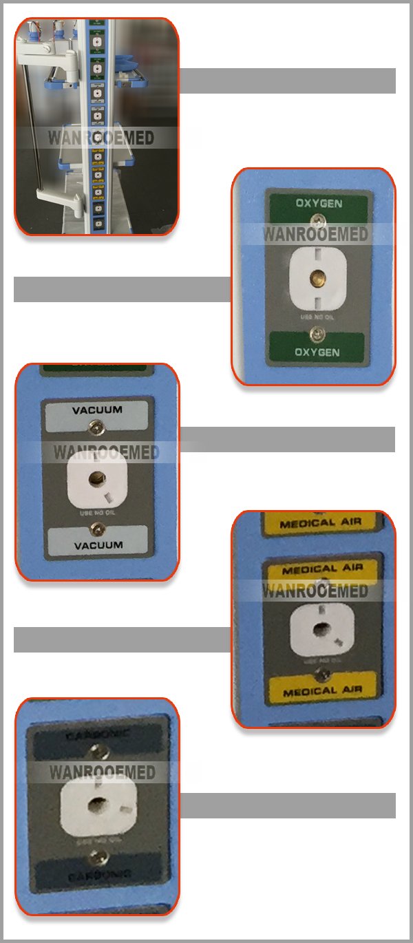 Interface de terminal de gaz | Oxygène * 2 air * 1 azote * 1 dioxyde de carbone * 1 oxyde nitreux * 1 émission d'échappement * 1 Adopter un sceau secondaire plus de 20 000 d'insertion et de retrait |