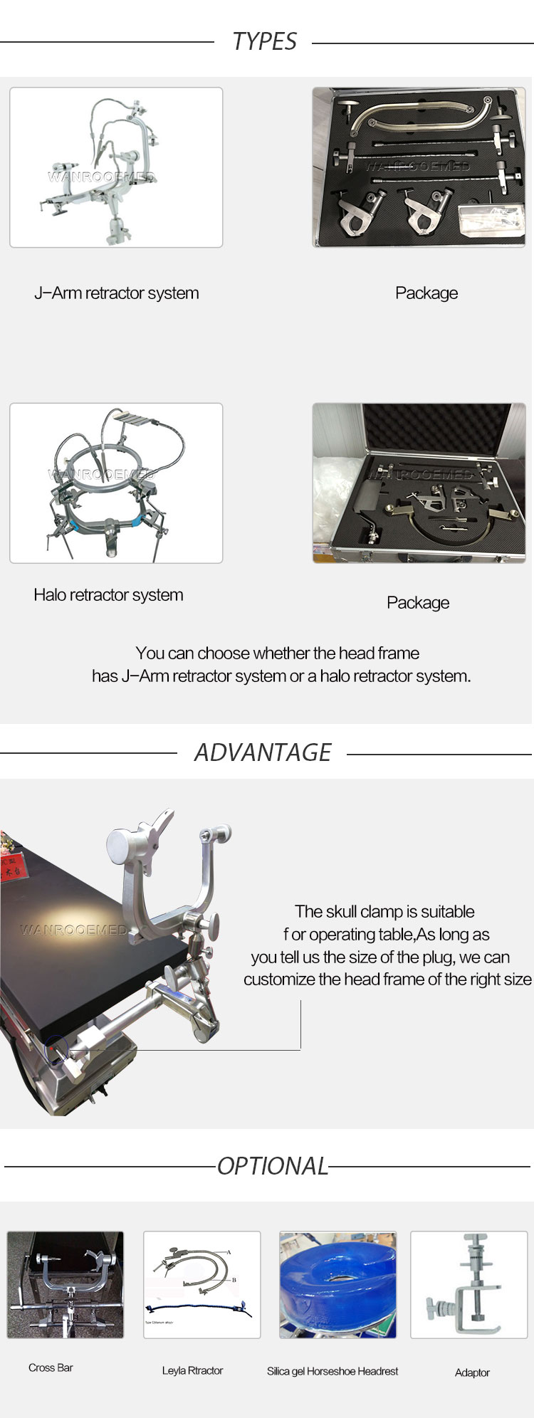 Opération du crâne La pince avec cercle de tête est fixée aux tables d'opération pour les chirurgies neurologiques, les chirurgies orthopédiques, etc.