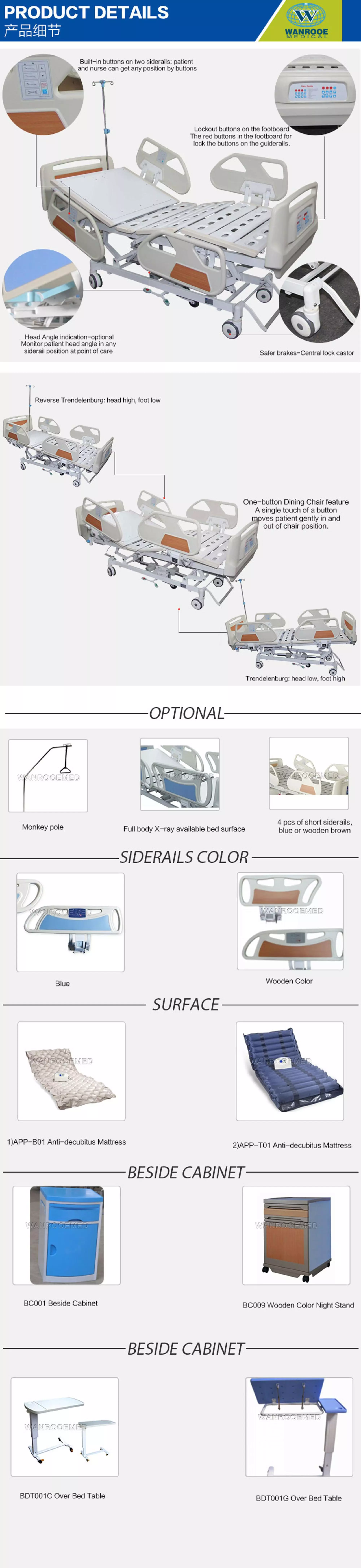 Sécurité du patient - Votre patienLa sécurité et le confort de votre chauffeur sont votre principale préoccupation. Le lit WANROOEMED BAE502 intègre plusieurs fonctions uniques pour vous aider à protéger et à soigner vos patients, notamment: