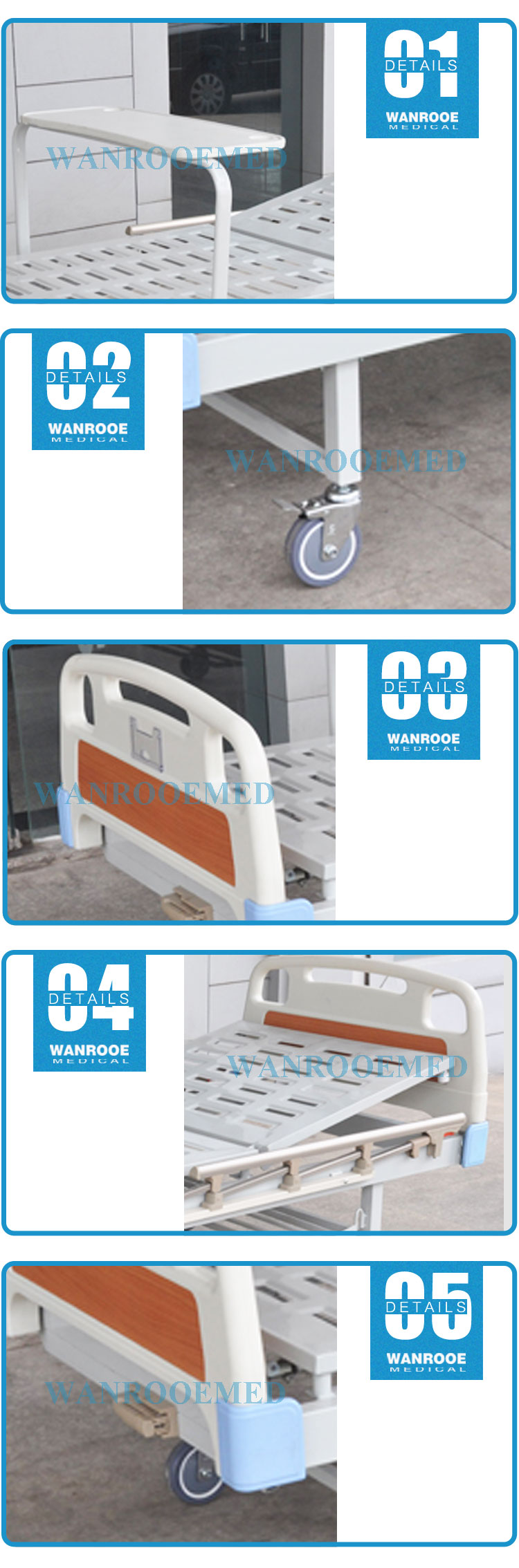 Lit médical d'hôpital manuel bon marché d'équipement médical de BAM100 offert par le fabricant de la Chine Technologie médicale Cie., Ltd de Jiangsu Rooe.
