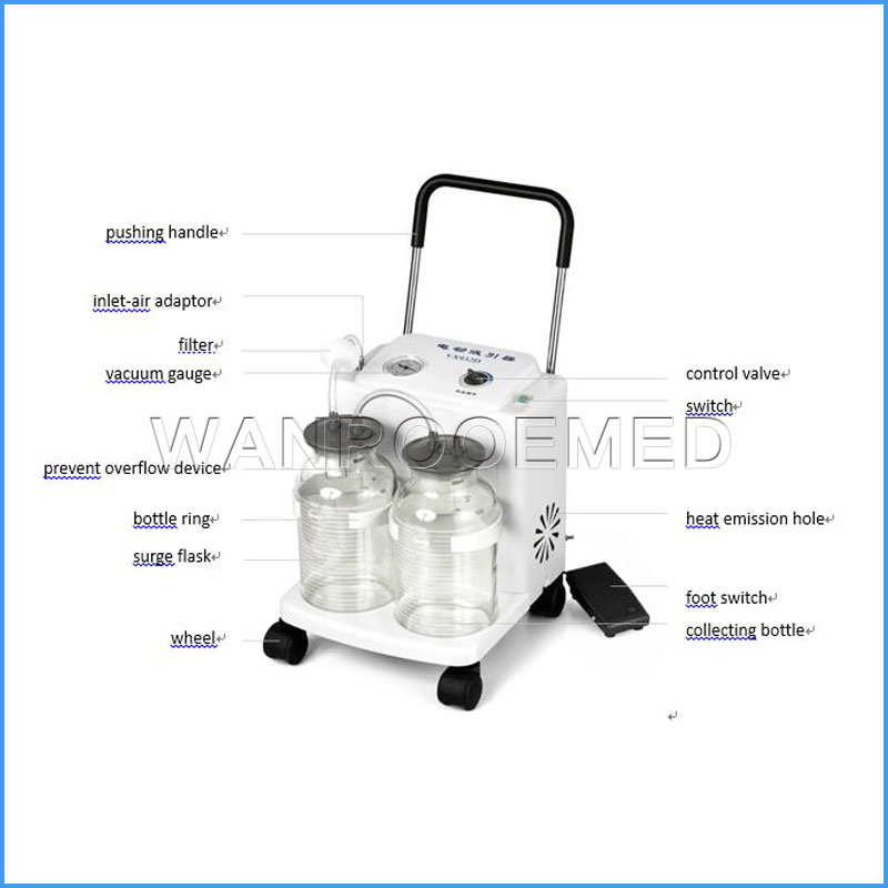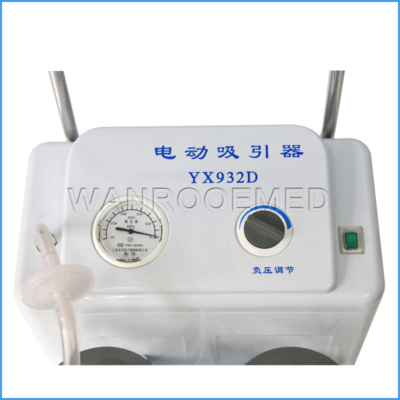 Modèle YX932D Aspirateur électrique nous, destiné à extraire divers mucus comme la purulence, le sang et les mucosités de la cavité hôpitaux ou centre de service médical social, est une unité d'aspiration mobile avec un débit élevé, un vide poussé et un style novateur. Il peut satisfaire la plupart demandes dans les salles d'opération.7. Stabilité et durabilité, faible bruit, sûr et fiable pour fonctionner