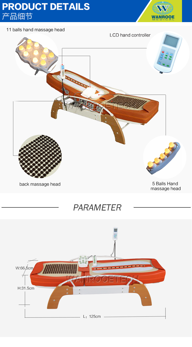 le table de massage est livré avec un uniboule de massage de main de conception, peut être facilement utilisé dans diverses parties du corps. La boule de Xiuyan entièrement naturelle pierre de massage, chauffage à l'intérieur du corps qui peut être ajusté selon à la température, vous donnant les soins les plus chauds.