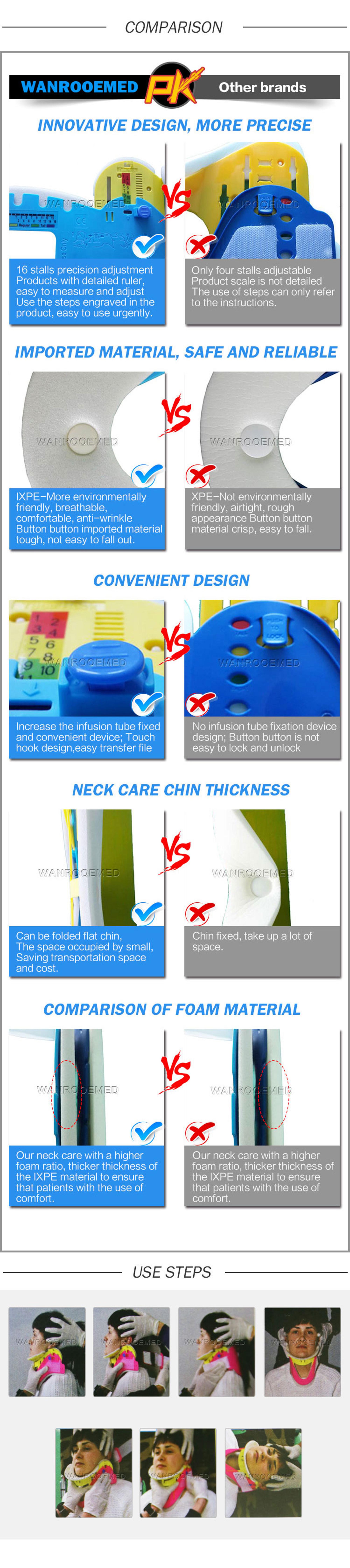 le Colliers de désincarcération sont conçus pour aider à la maintenance de alignement neutre, prévention du balancement latéral et antéro-postérieur flexion et extension du col de l'utérus pendant le transport et la routine soins aux patients du mouvement.