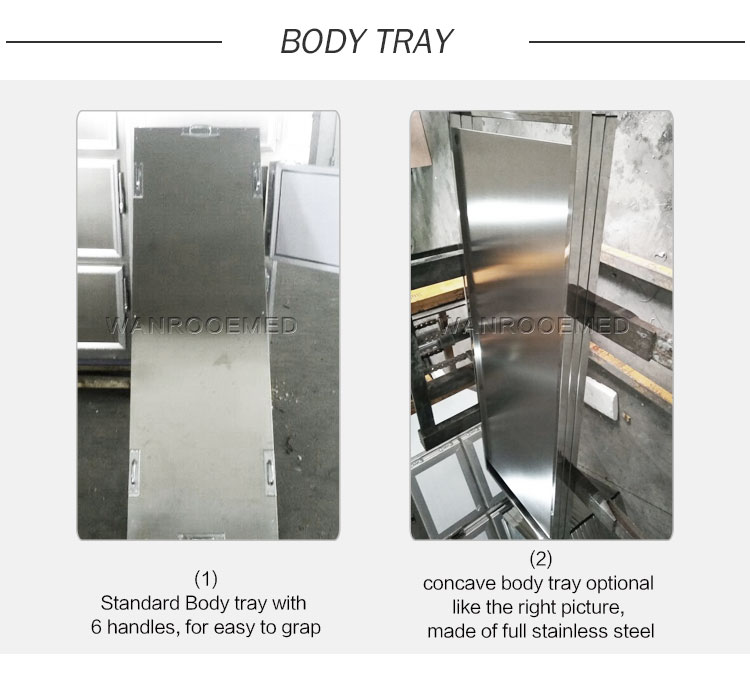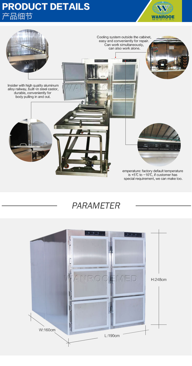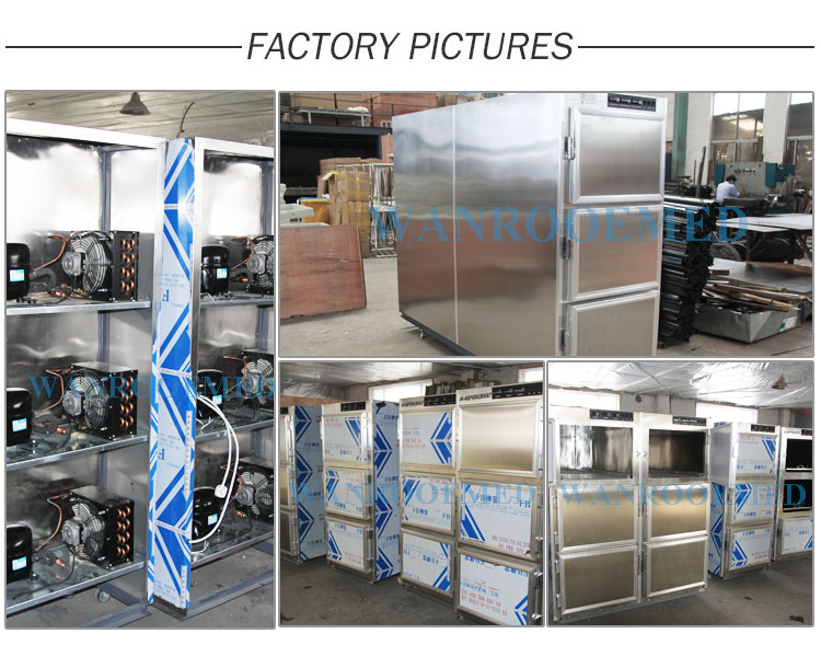 Réfrigérateur Morgue Système de refroidissement: système de refroidissement fermé, vitesse de refroidissement rapide. Utilisation d'un système de réfrigération à contrôle unique et à cycle unique autonome, une couche d'un système de refroidissement indépendant. Peut travailler simultanément, peut aussi travailler seul.