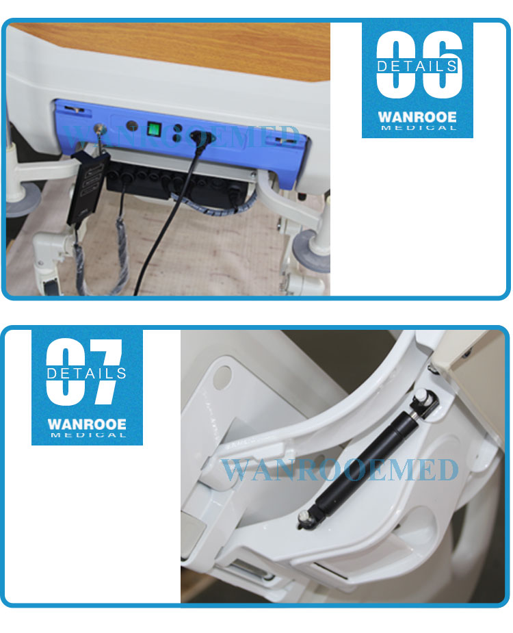 * Движения, включая вверх-вниз целую кровать, тренеленбург и реверс тренеленбург, складывание задней части электрически управляется и управляется кнопками.
